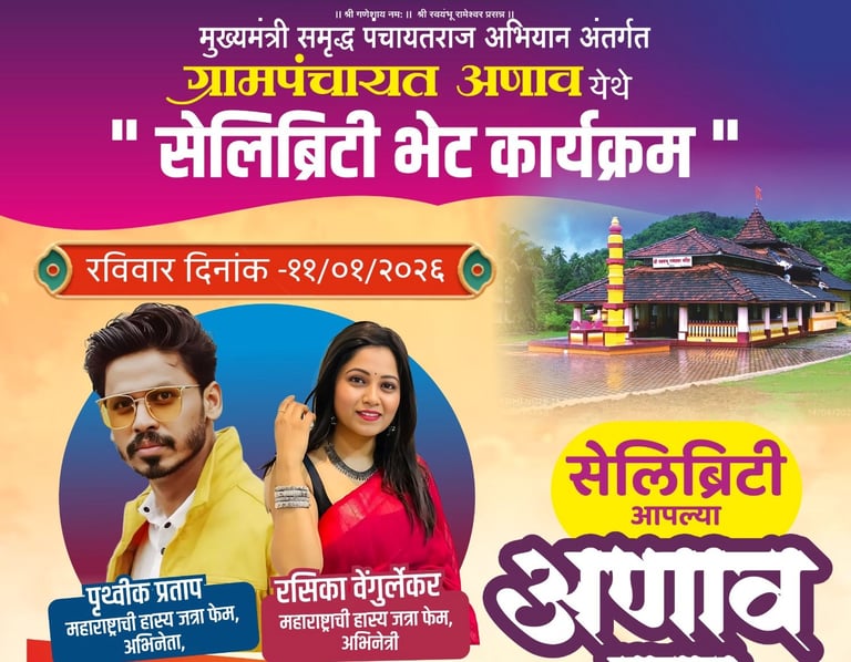 मुख्यमंत्री समृद्ध पंचायतराज अभियान अंतर्गत ग्रामपंचायत अणाव महोत्सव २०२५ गावातील स्थानिक कलाकारांचे सांस्कृतिक कार्यक्रम जेष्ठ वृद्ध, नागरिकांचा सत्कार, गावातील सर्व मान्यवर ज्यांनी उद्देशनीय कामगिरी केली यांचेही सत्कार या निमिताने करण्यात आले